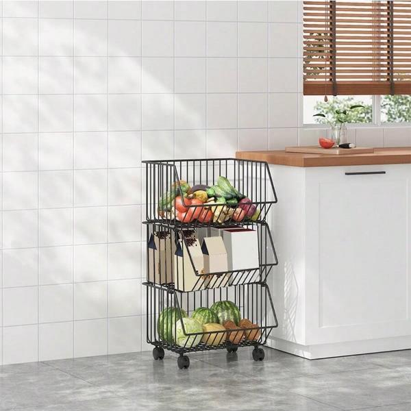 Ιδανικό για την αποθήκευση λαχανικών, φρούτων, ξηρών προϊόντων και άλλων, αυτό το καρότσι σας βοηθά να έχετε τα πάντα σε κοντινή απόσταση.