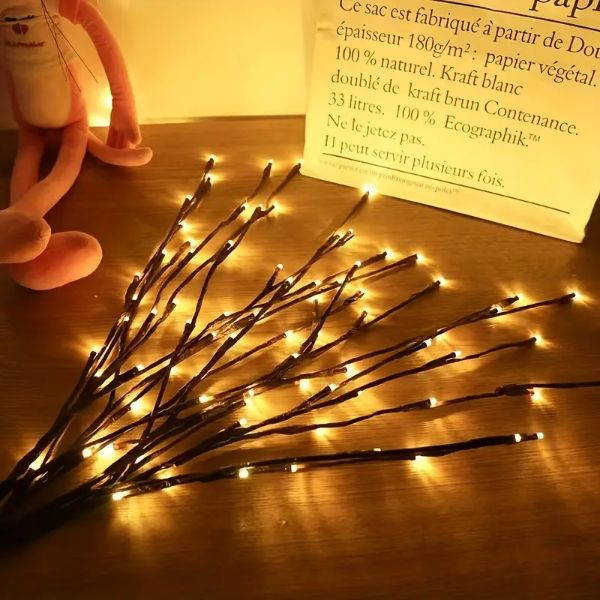 Ένα σετ κλαδιών με LED φως περιλαμβάνει τρία κλαδιά, με κάθε κλαδί να διαθέτει 20 LED φωτάκια, συνολικά 60 λαμπάκια, παρέχοντας άπλετο φως για τη δημιουργία μιας άνετης και φιλόξενης ατμόσφαιρας.