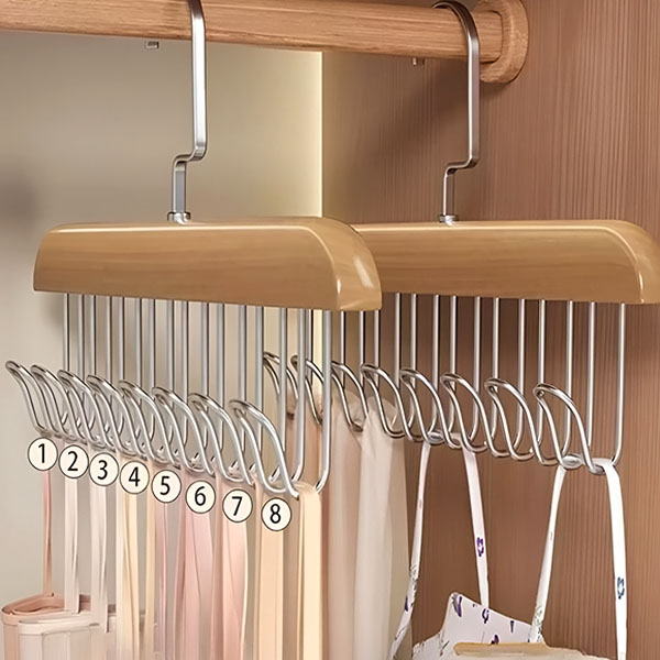 Κουραστήκατε από τα ακατάστατα σουτιέν και τις γραβάτες που καταλαμβάνουν περιττό χώρο; Το OCTAHANGER με 8 άγκιστρα έχει σχεδιαστεί για να μεταμορφώσει την αποθήκευση των ρούχων σας, διατηρώντας τα εσώρουχα και τα αξεσουάρ τακτοποιημένα και κομψά αναρτημένα.